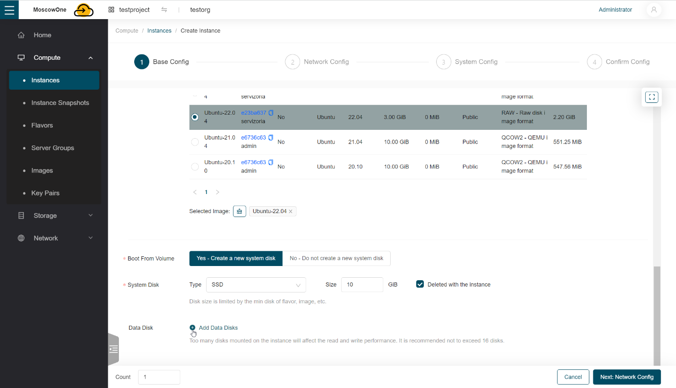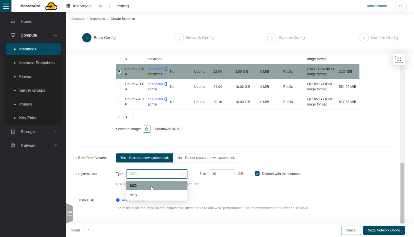 Рекомендуем при выборе размера установочного диска учитывать, что он не должен быть меньше размера, который занимает образ операционной системы.Рядом с окном для указания размера диска, устанавливается флажок Deleted with the instance. Эта настройка проставляется по умолчанию и означает то, что при удалении данной виртуальной машины, диск будет удален вместе с ней.