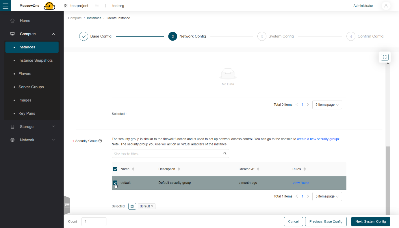 Появляется раздел Network Config, выбираем Shared Networks и выбираем сеть public, ip-адрес назначается автоматически.